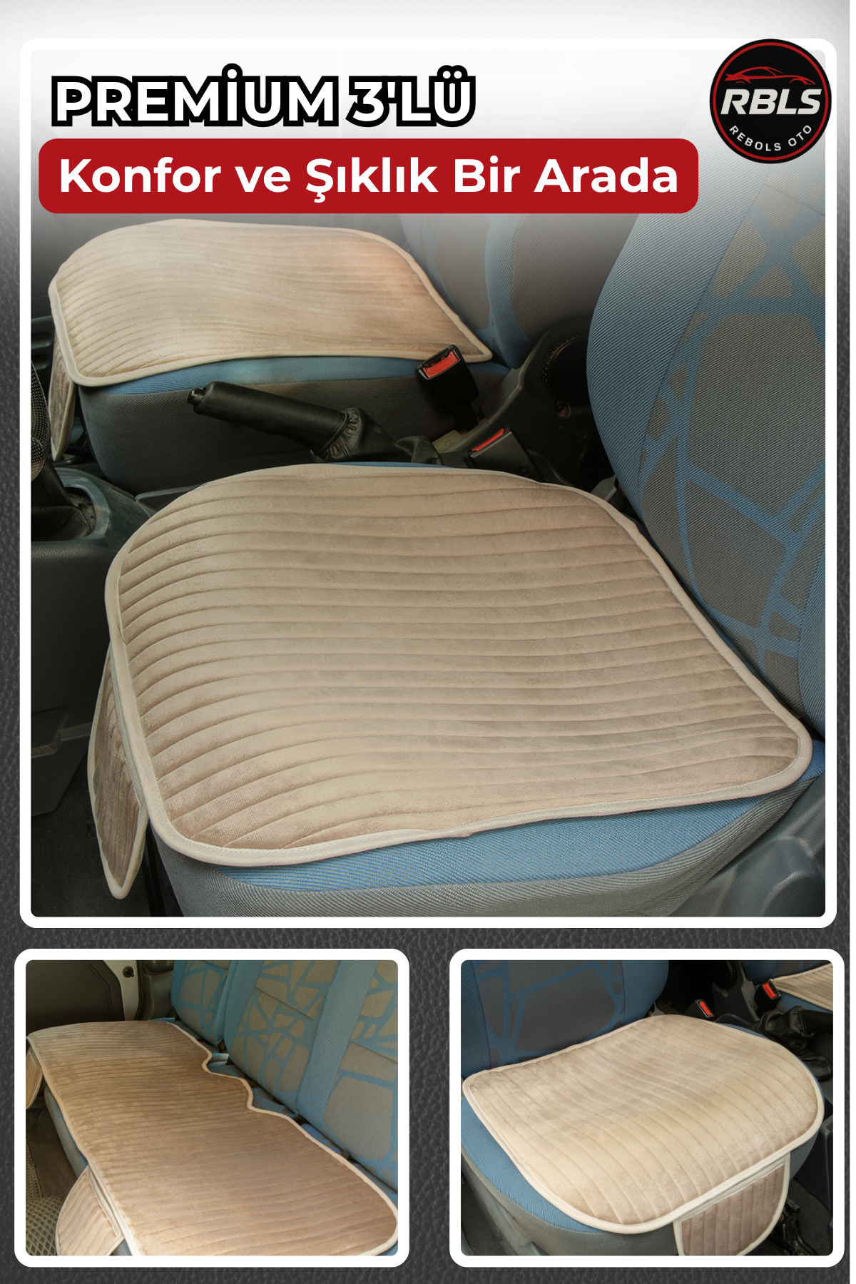 Velur Cepli &Terletmez Oto Koltuk Minder Seti-Koltuk Koruma Kılıfı 3'lü Set